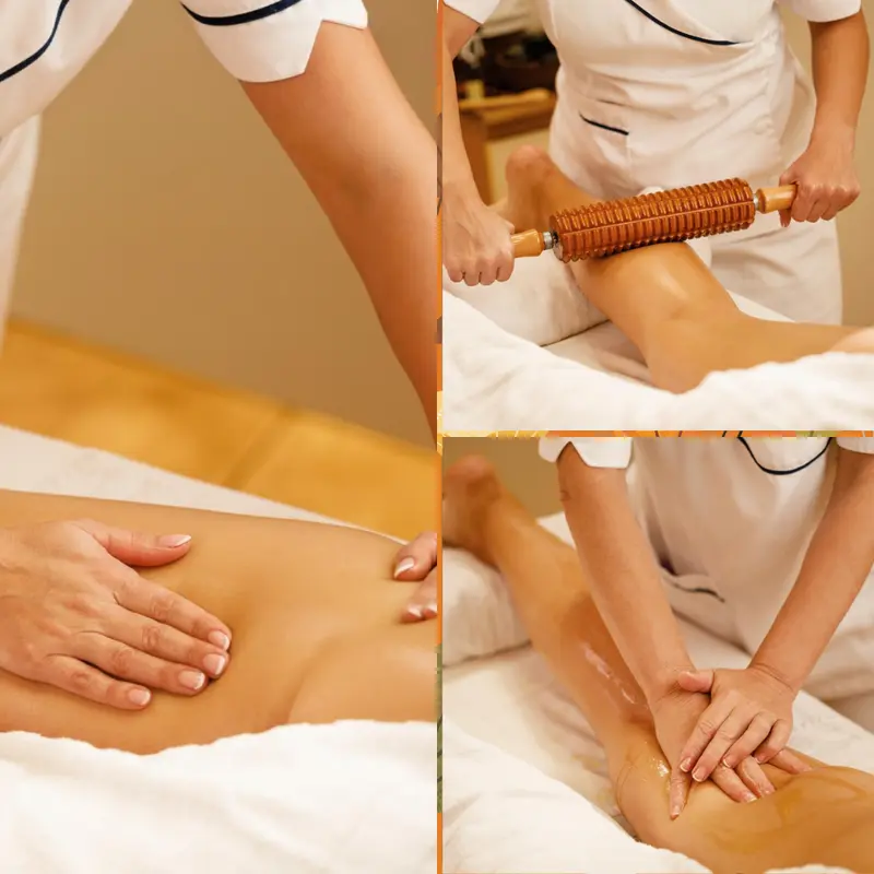 Brazil Cellulit Masszázs – Hagyományos üvegköpöly és bambusz eszközök kombinációjával a szövetek mély átdolgozását kínálja. Fokozza a vér- és nyirokkeringést, fellazítja a zsírsejteket, csökkenti a cellulitot és feszesíti a bőrt. A kezelés végén választható fóliás tekercselés erősíti az alakformáló és bőrszépítő hatást.